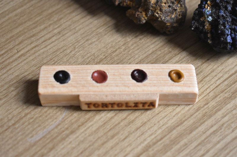 Este pequeño bloque es un muestrario de gotitas de colores primarios. Una manera accesible y curiosa de poder probar nuestros colores botánicos favoritos.
