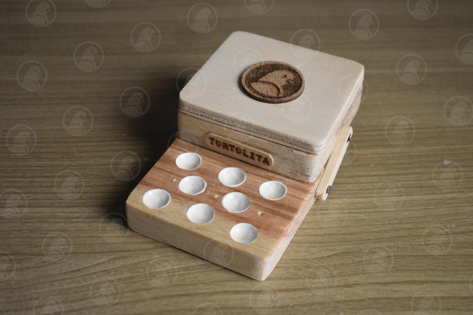Este curioso Artilugio es un Invento creado por nosotrxs, Elaborado con la intención de que cada tortolin tenga una estación de arte que puede transportar e instalarse en cualquier lugar, convirtiéndose en un espacio creativo, esta versión pequeña, fue elaborada a partir del diseño inicial del estuche Gremio, el Gremito, y su peculiar esencia miniatura tiene como objetivo poder ser más sencillo poderlo transportar.