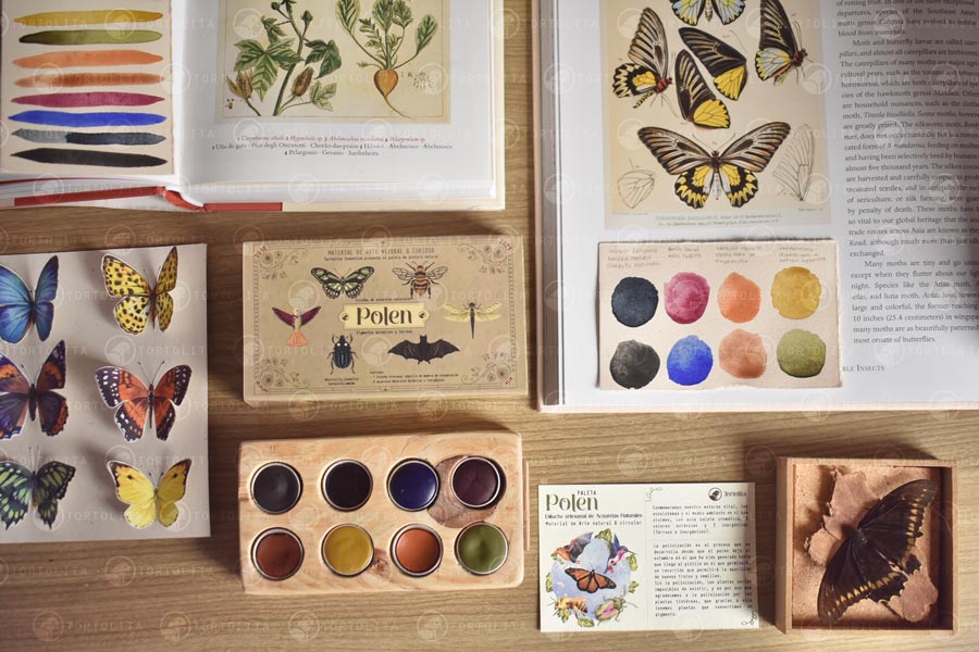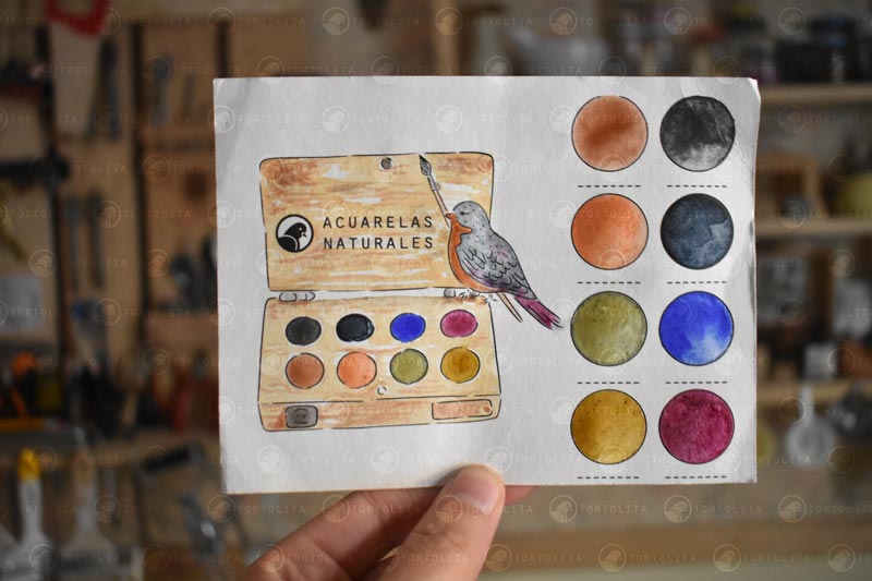 Los pigmentos de Tortolita mi Inventiva, son naturales orgánicos e inorgánicos, se han extraído de manera natural, de origen botánico, térreo y mineral.