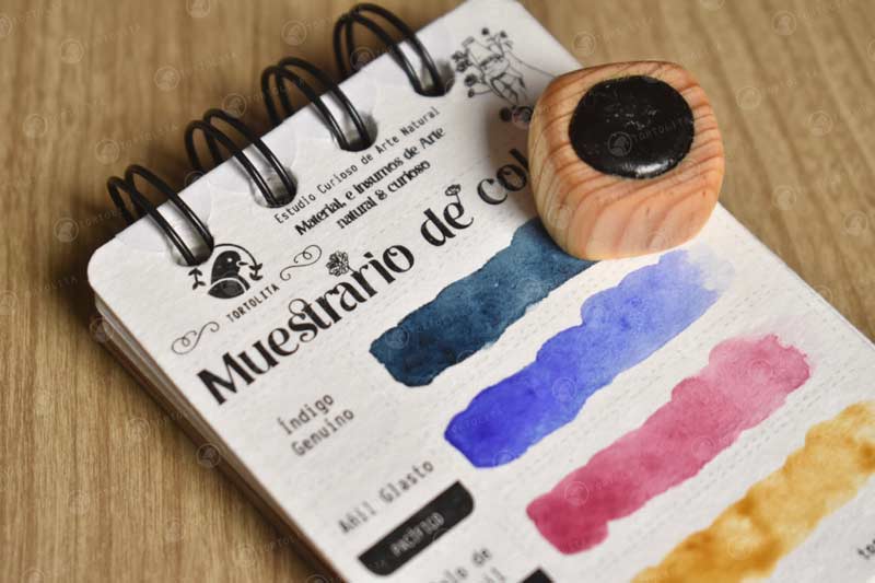 Acuarela natural de pigmento de Índigo genuino, de color azul profundo, el contendedor es tallado a mano en madera de pino recuperada, cubierta de aceite de olivo.
